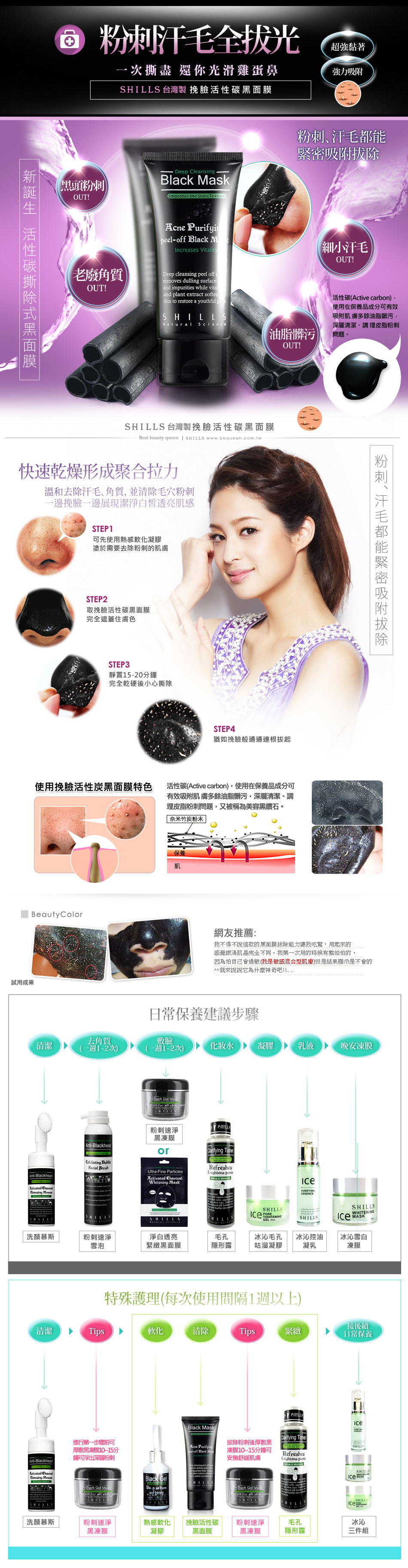 注意事項SHILLS挽臉活性炭黑面膜的主要成分「活性」很高,效果顯著,所以建議水們在產品開封後勿放浴室、潮濕處或陽光直射的地方,也建議在使用的過程中保持手部乾爽、乾淨的情形使用本產品,使用完成後將瓶口保持乾淨,蓋上瓶蓋放置合適的位置,這樣長保活性佳,當然會更有效哦!