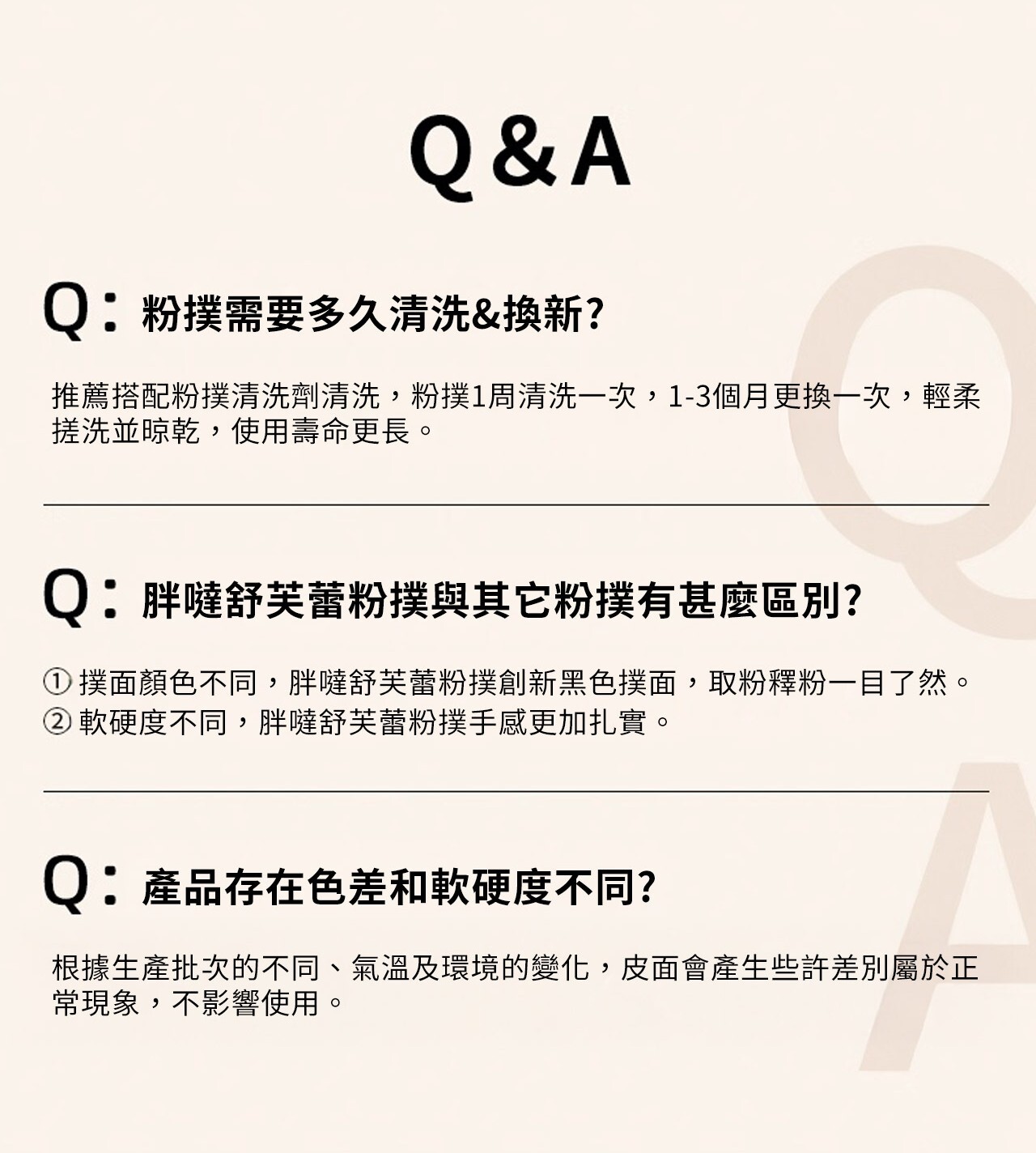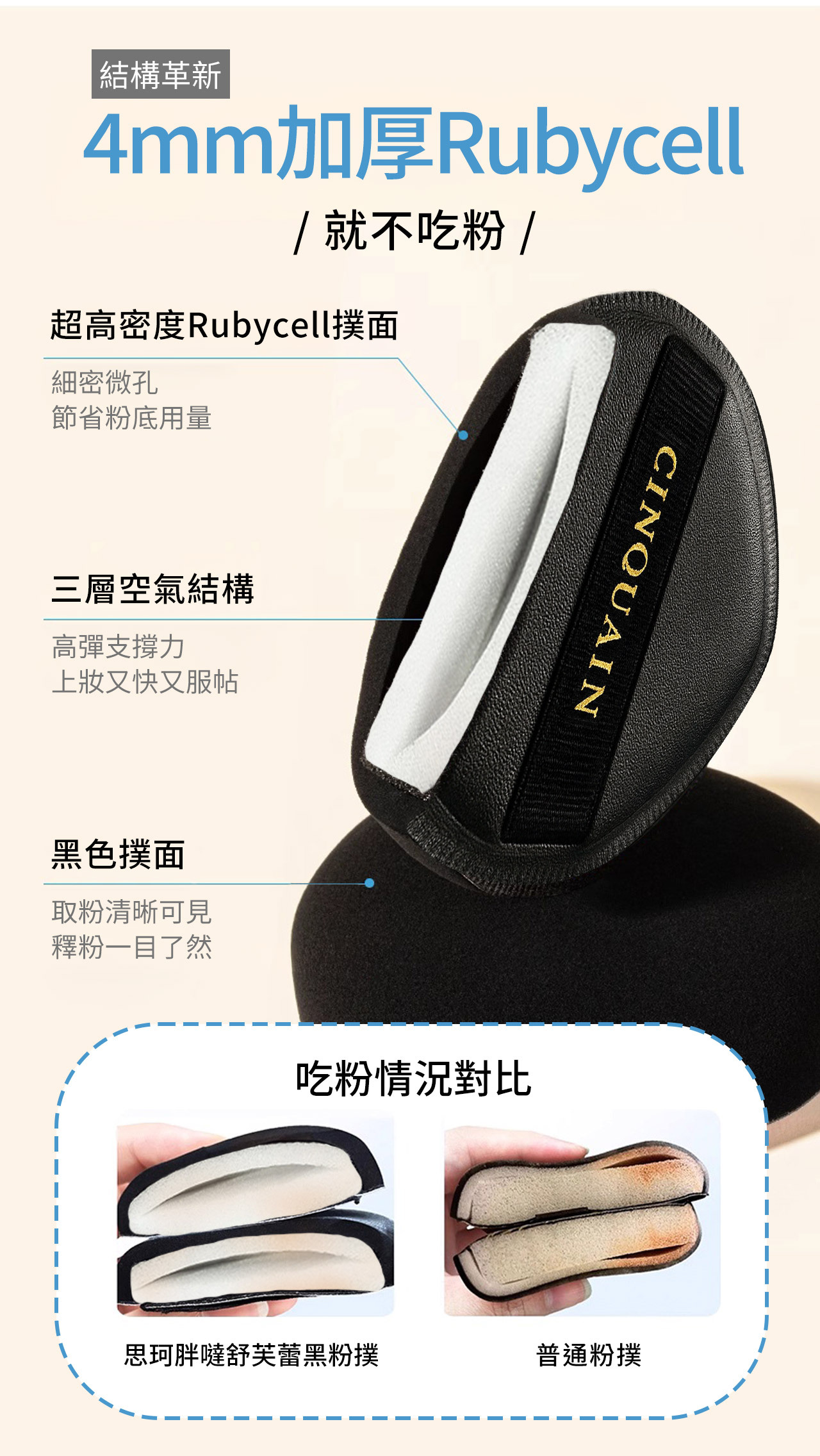 *就不吃粉—高密度結構,就不不易吃粉的加大加厚撲面,柔軟高彈的觸膚感受