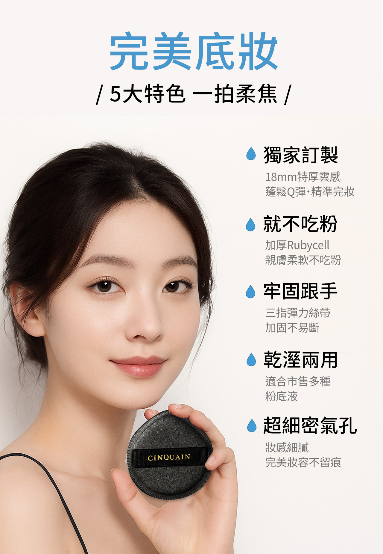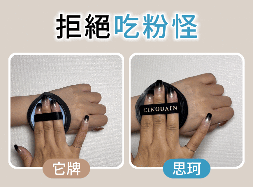 *牢固跟手—三指彈力絲帶加固不易斷,拍出扎實底妝。