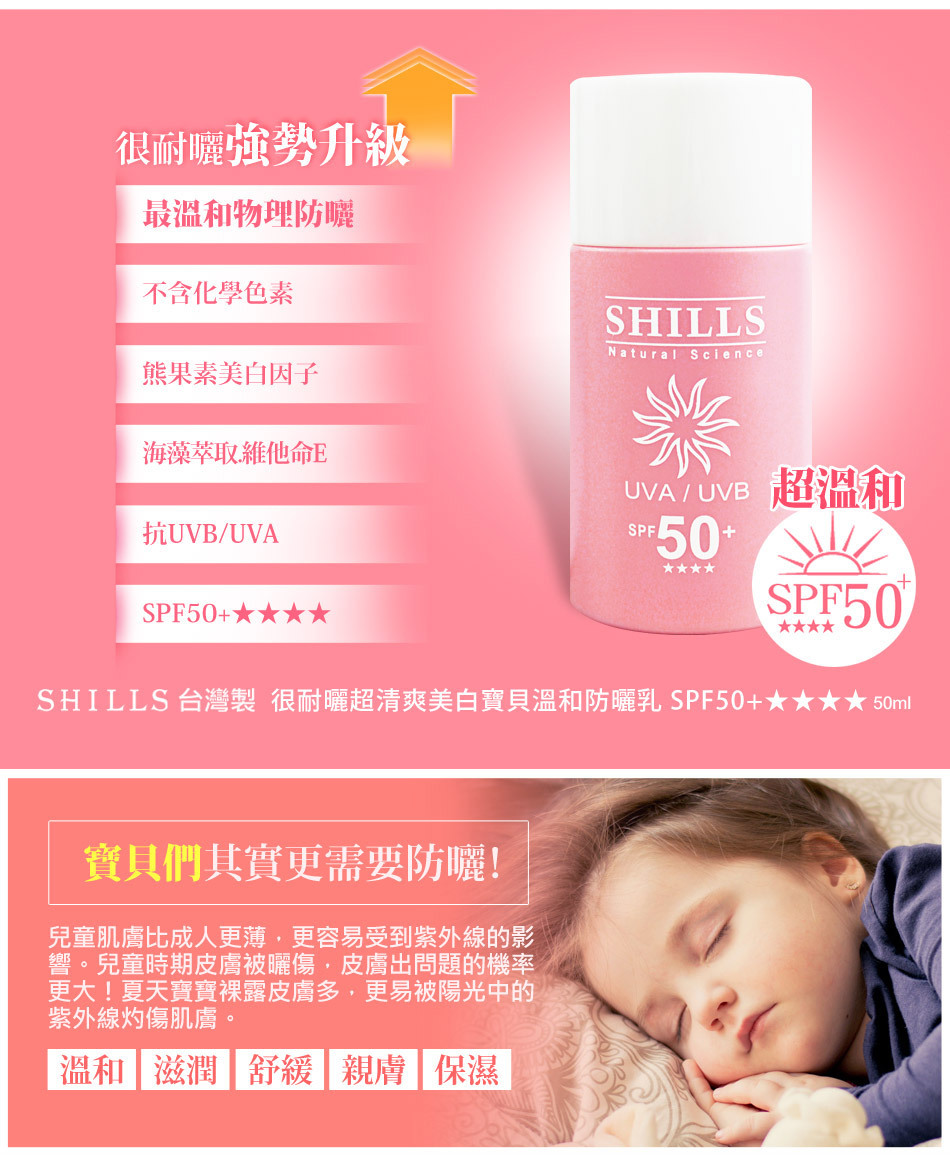 【商品名稱】很耐曬超清爽美白寶貝溫和防曬乳SPF50+★★★★