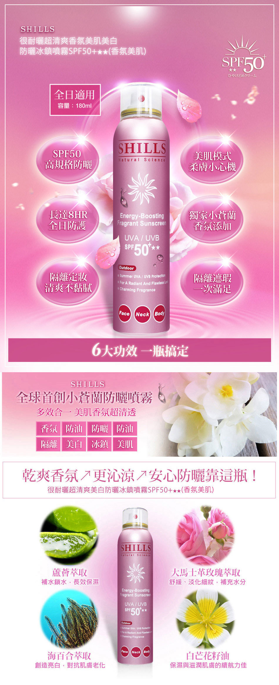 【商品名稱】SHILLS很耐曬超清爽美白凍感爽身防曬乳SPF50★★★★