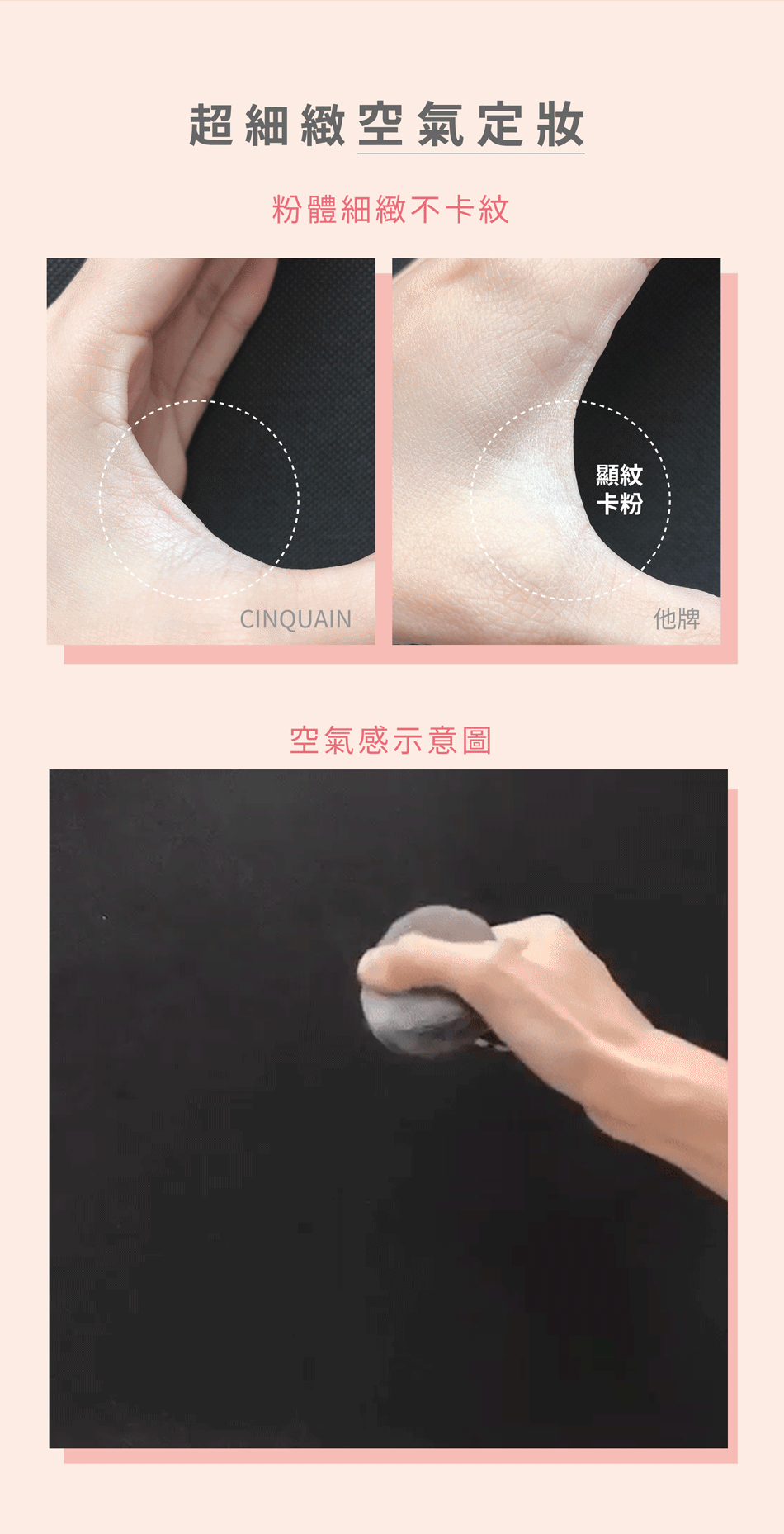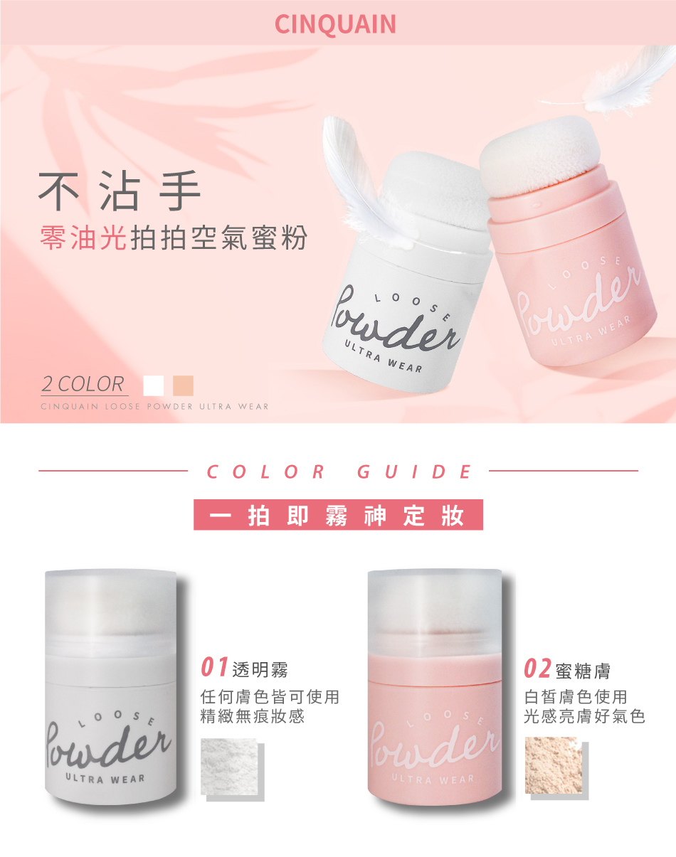 【商品名稱】CINQUAIN思珂 零油光拍拍空氣蜜粉 01透明霧 02蜜糖膚