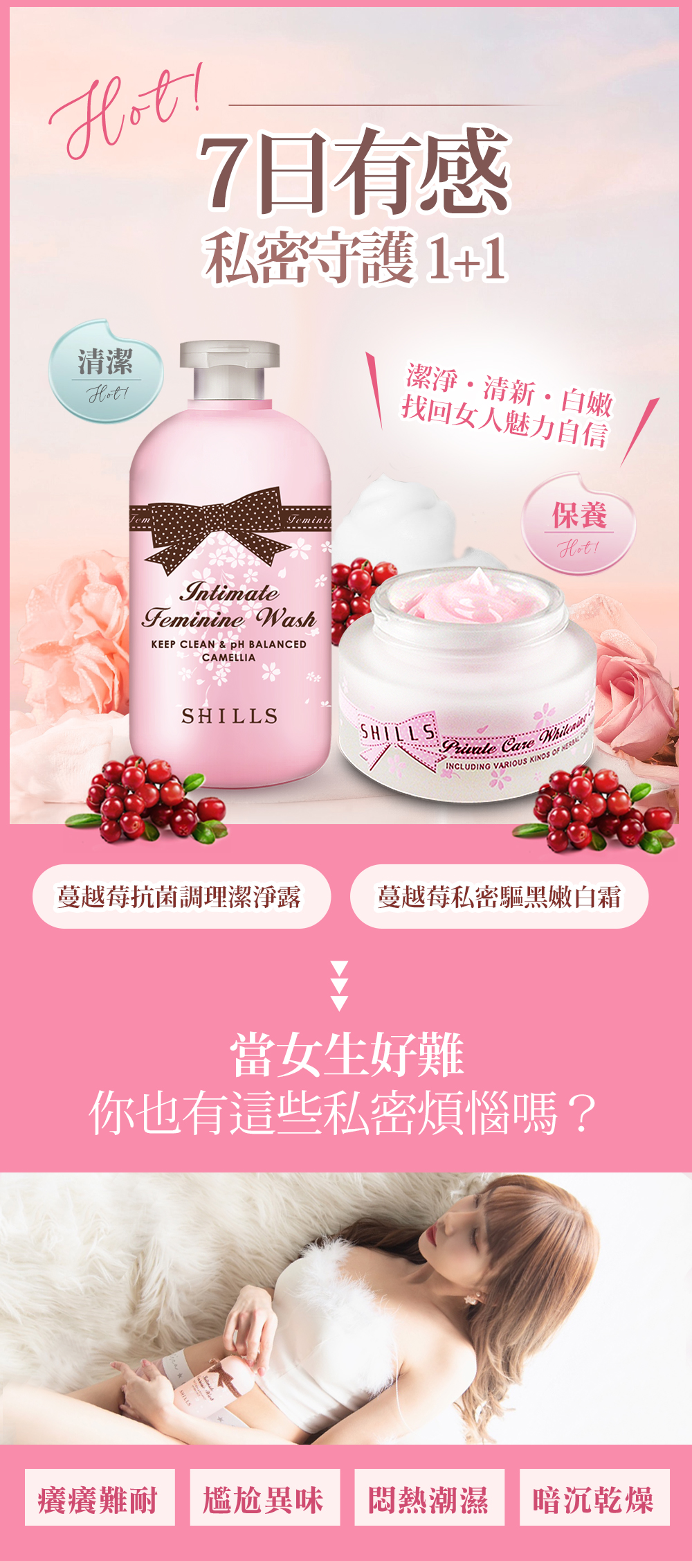 【今日驚爆🔻4.2折 私密嫩妹首選】SHILLS蔓越莓抗菌調理潔淨露*2+私密嫩白霜*2