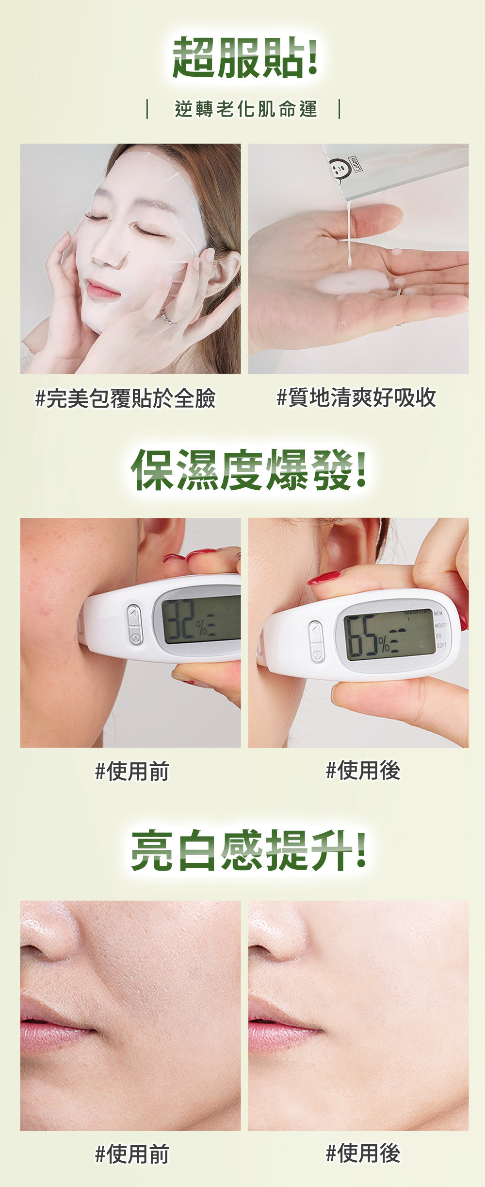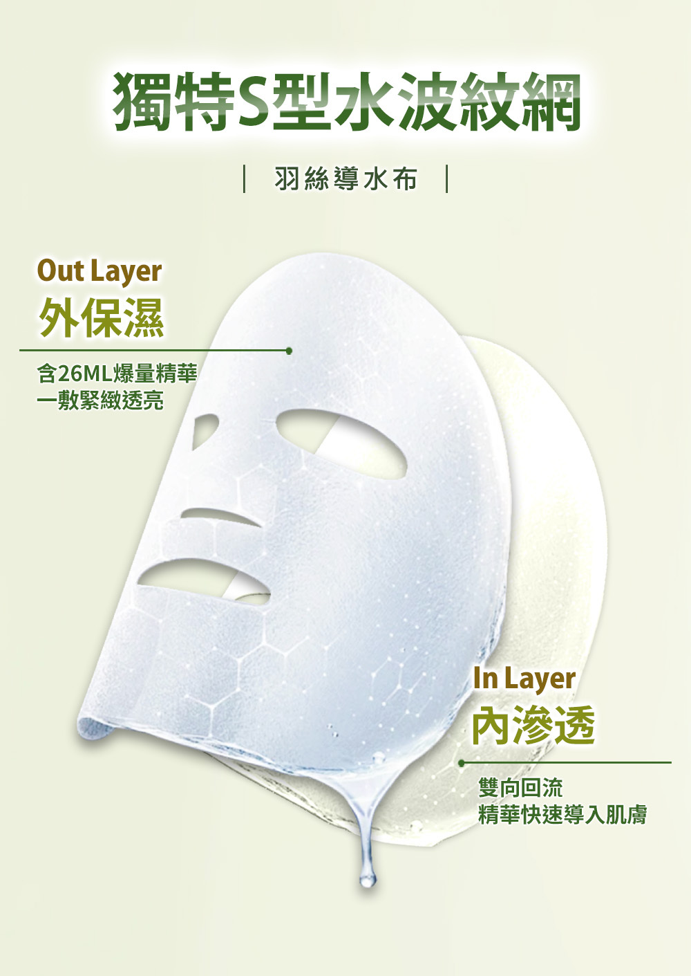 【用 法】清潔後將面膜敷於全臉,約15-20分鐘後取下,再以指腹輕輕按摩至吸收。