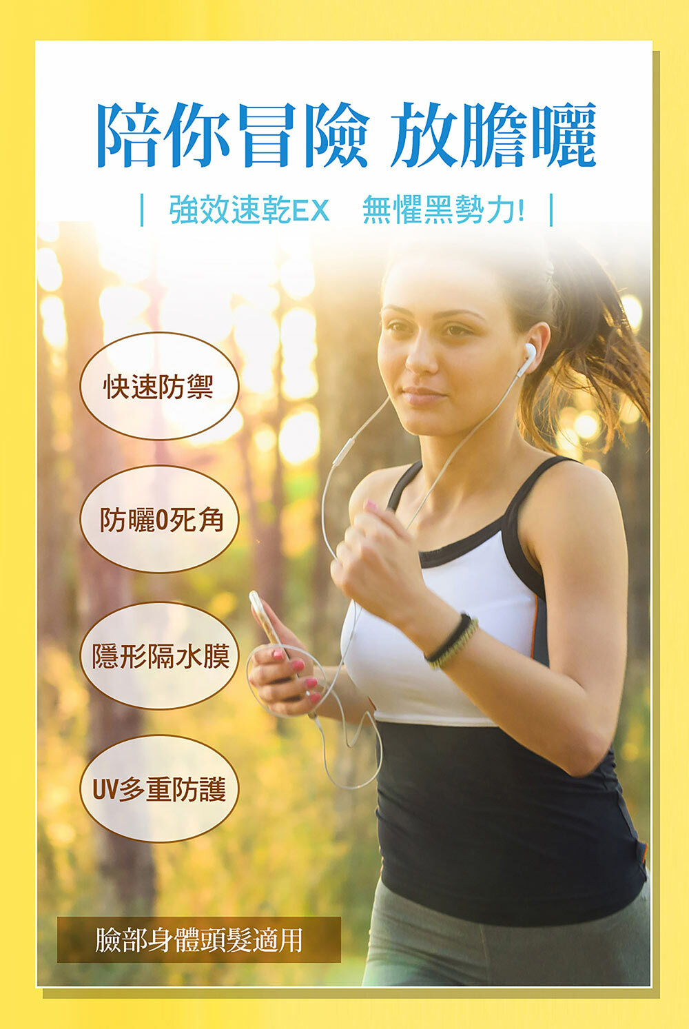 超防水、不泛白,全面防曬零死角,長時間抗曬!