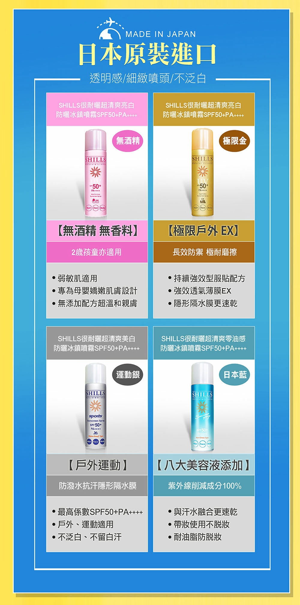 【戶外放膽曬 新上市】SHILLS 很耐曬超清爽亮白防曬冰鎮噴霧SPF50+ PA++++(極限戶外EX)(日本金)