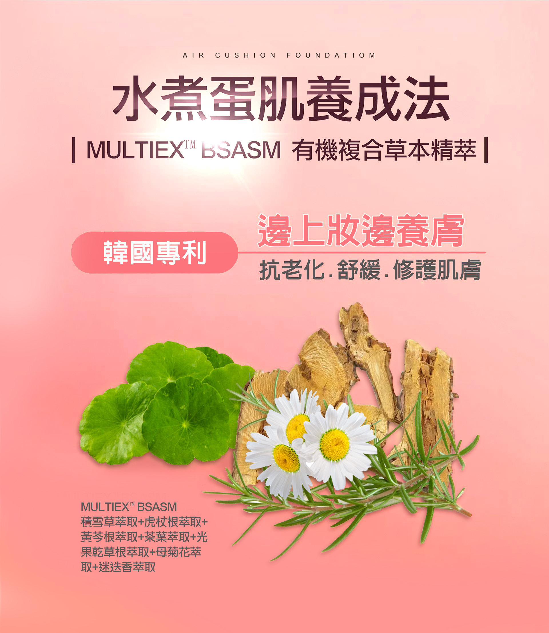 【用 法】使用氣墊粉撲沾取後輕拍在臉上。