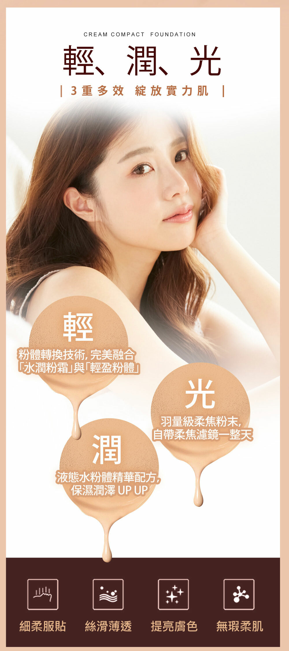 獨家「粉體轉換技術」,水潤/輕盈完美融合。