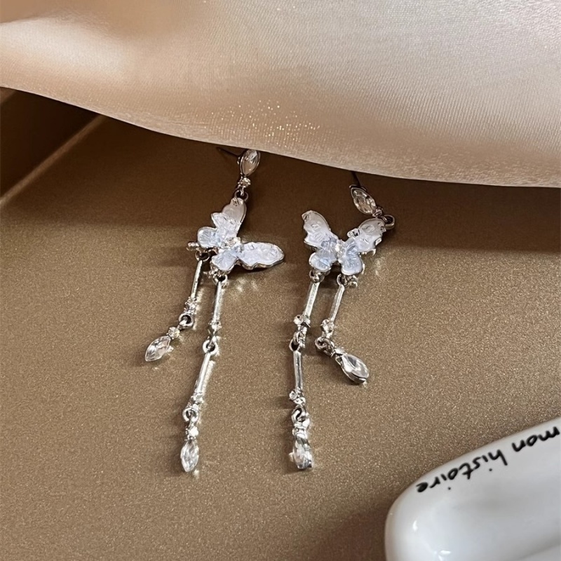 韓系個性水晶蝴蝶流蘇耳環