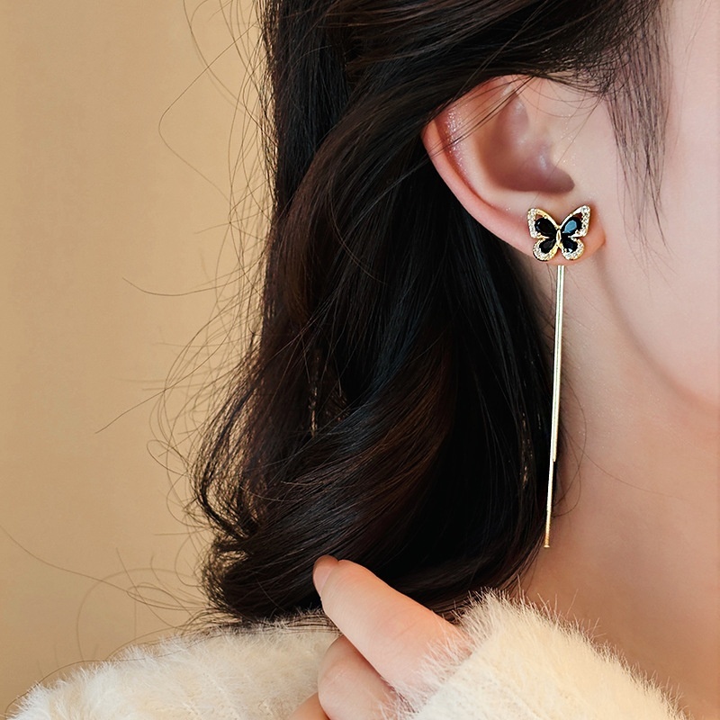 韓系名媛水晶蝴蝶鑲鑽耳環