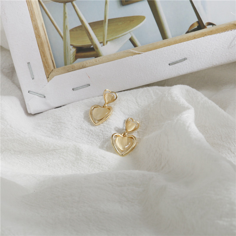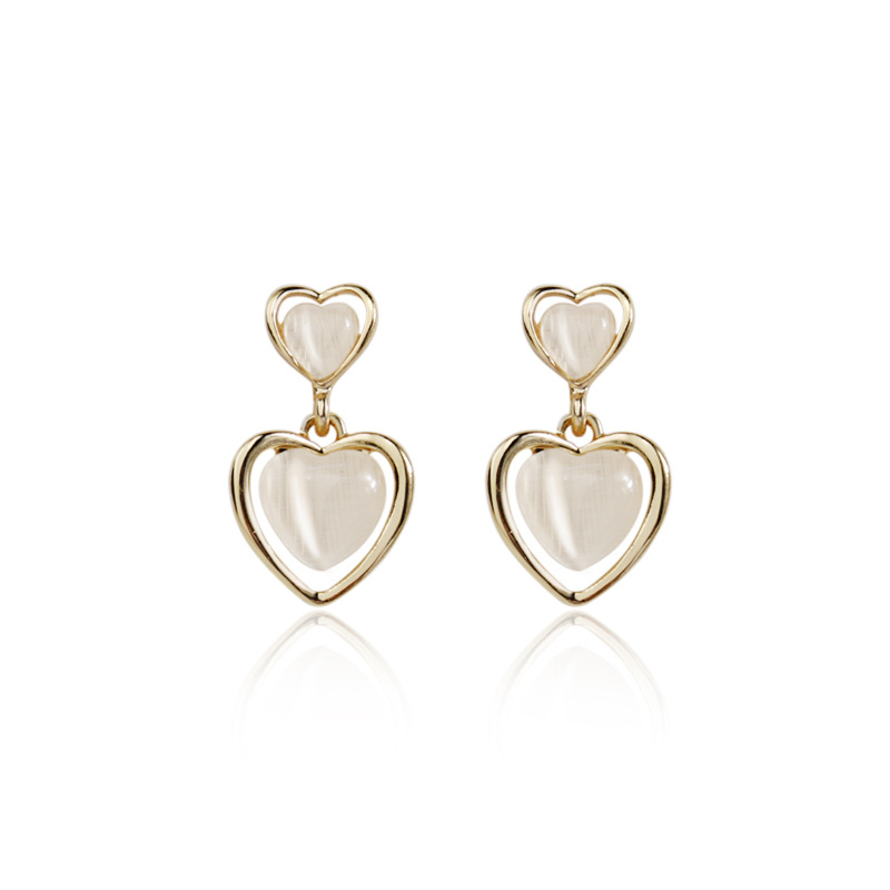 韓系簡約愛心形貓眼石吊墜耳環