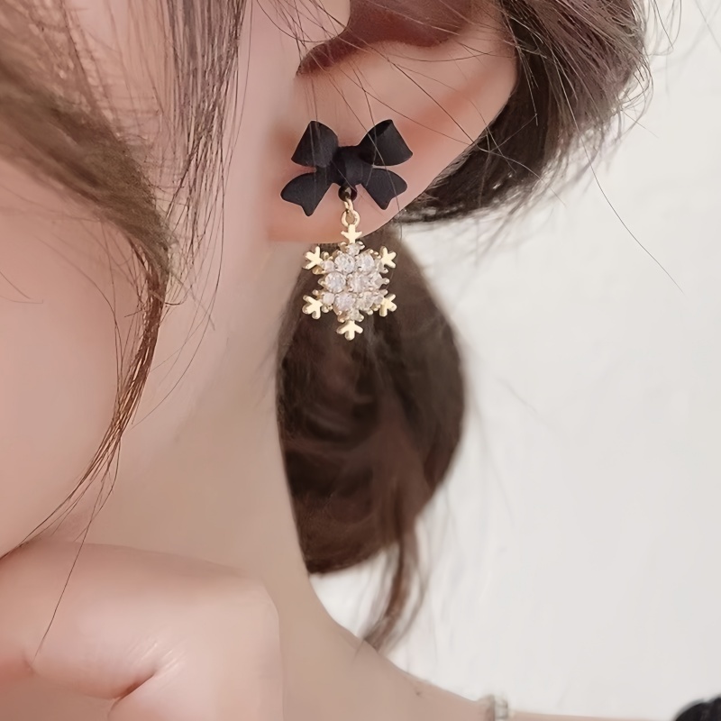 韓系聖誕蝴蝶結雪花吊墜耳環