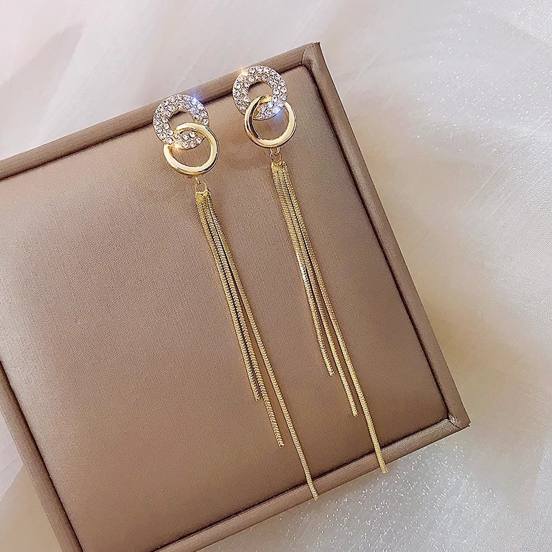 韓系輕奢圓圈流蘇鑲鑽耳環