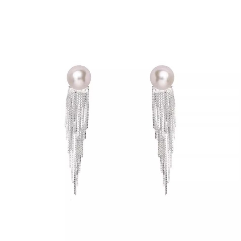 韓系輕奢珍珠後綴流蘇兩戴耳環